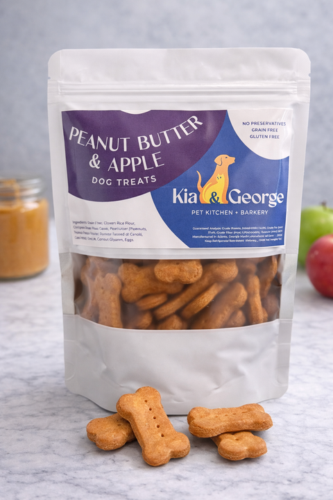 We keep it real with homemade creamy peanut butter that we grind ourselves from unsalted roasted peanuts, naturally sweet apples, and a grain-free, gluten-free recipe that’s gentle on sensitive tummies. No fillers. No shortcuts. Just honest, tail-wag-worthy goodness.